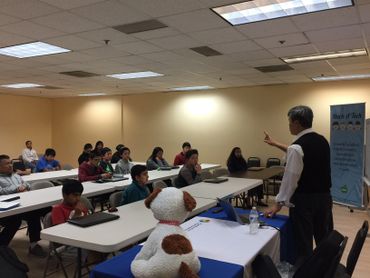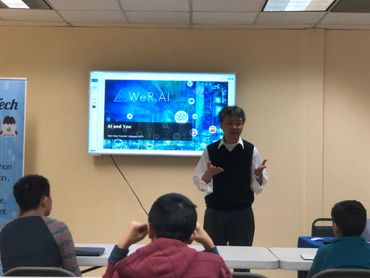 20 Students attended "Hack A Tech - Artificial Intelligence and You" held in ShengMeng Education Center in Pleasanton, CA. Featured speaker Mr. Man Chan introduce student what is the Artificial Intelligence. Mr. Chan use question and answer game to illustrate how AI to visualize the things that is invisible.