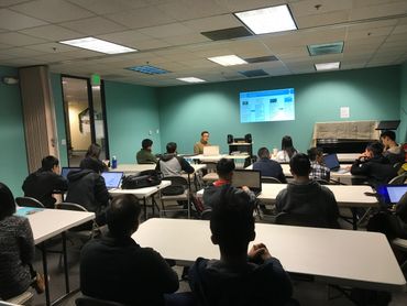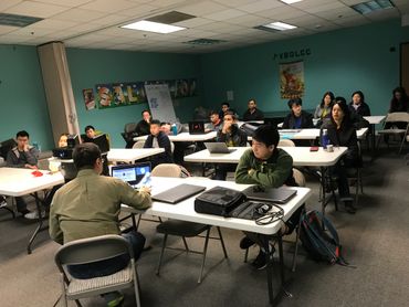 Jerry gave a comprehensive overview of the paths a student can take to eventually become an engineer. He discussed topics like learning resources, student organizations, competitive programming, hackathons, majoring in CS, internships, and what's really like working as a software engineer in Silicon Valley! Students then split into two groups, one practiced a USACO problem, the other used LightBot to program a robot. Please contact us if you would like to receive the slides shared at this session.